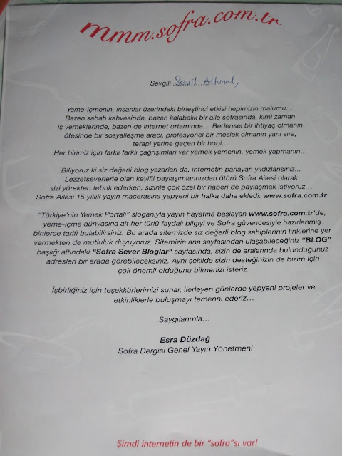 sofra dergisi güzel bir süpriz yapmış ve çay saati kitabı hediye göndermiş.