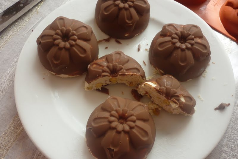 KALIPLARA ERİMİŞ ÇİKOLATALAR SÜRÜLÜR. BUZLUKTA 5 DAKİKA BEKLETİLİP İÇİNİ DONDURMAYLA DOLDURURUZ